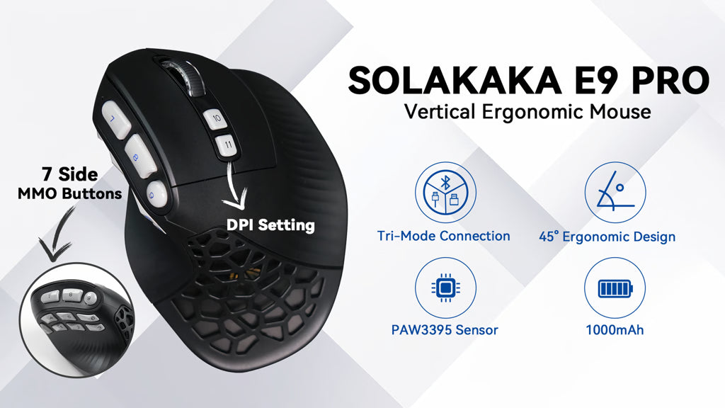 PAW3395 Sensor | Tri-Mode Connection | 45° Vertical Grip | 10-Key MMO Layout | 1000mAh Battery