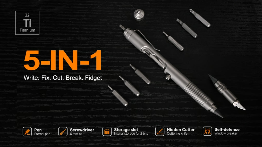 Write. Fix. Cut. Break. Fidget. It's more than a pen—it’s your pocket-sized workshop and stress reliever in one.