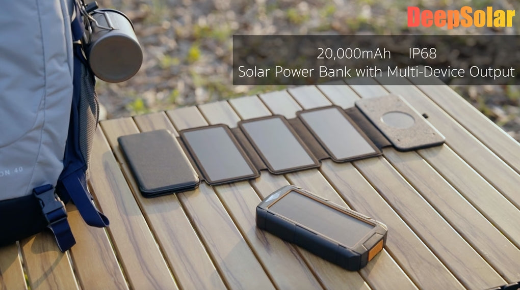 20,000mAh · 18W Solar Charging · IP68 Waterproof · 40W Fast Charging · Wireless & Multi-Device Power · Outdoor Lighting