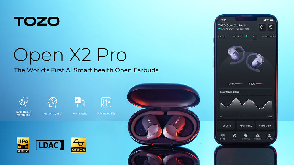 Neck Health Monitoring | Motion Control | AI Assistant | Spatial Audio | Hi-Res | Dual-Axis Earhook | LCD Screen | IPX7 | Advanced EQ