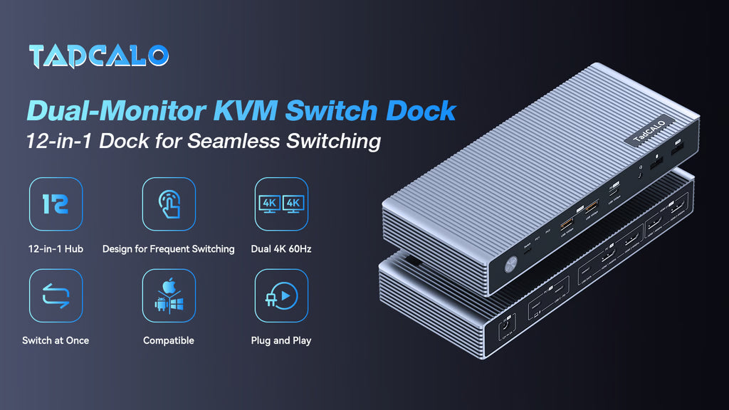 One-Click Instant Switch|Dual 4K@60Hz Displays|12-in-1 Dock|PD 100W Laptop Charging|USB-C & USB-A Gen2|Seamless Multi-Device Control