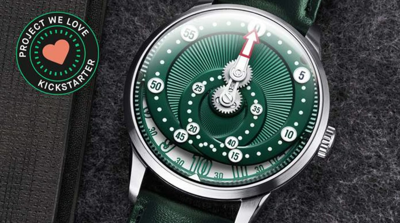 A disc-driven mechanical jump hour wristwatch built for Kickstarter launch.