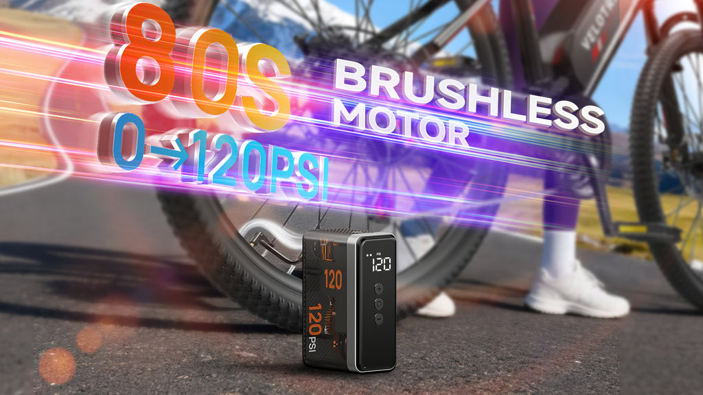 Tiny body, pro-level speed. Inflate any bike tire to 120 PSI in 80 seconds with smart pressure accuracy and all-terrain reliability